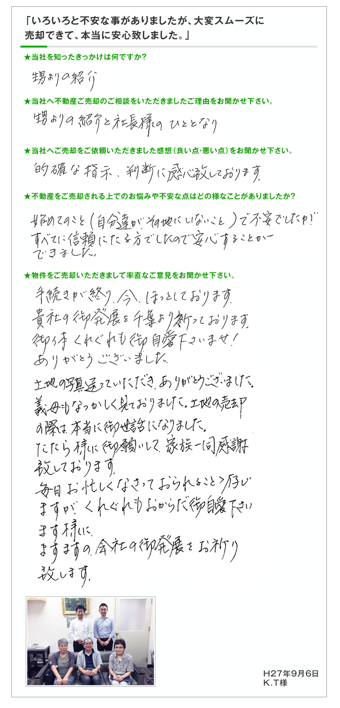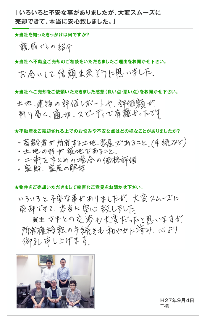 【当社でご売却をお手伝いさせていただきました、お客様の声の一部です。】