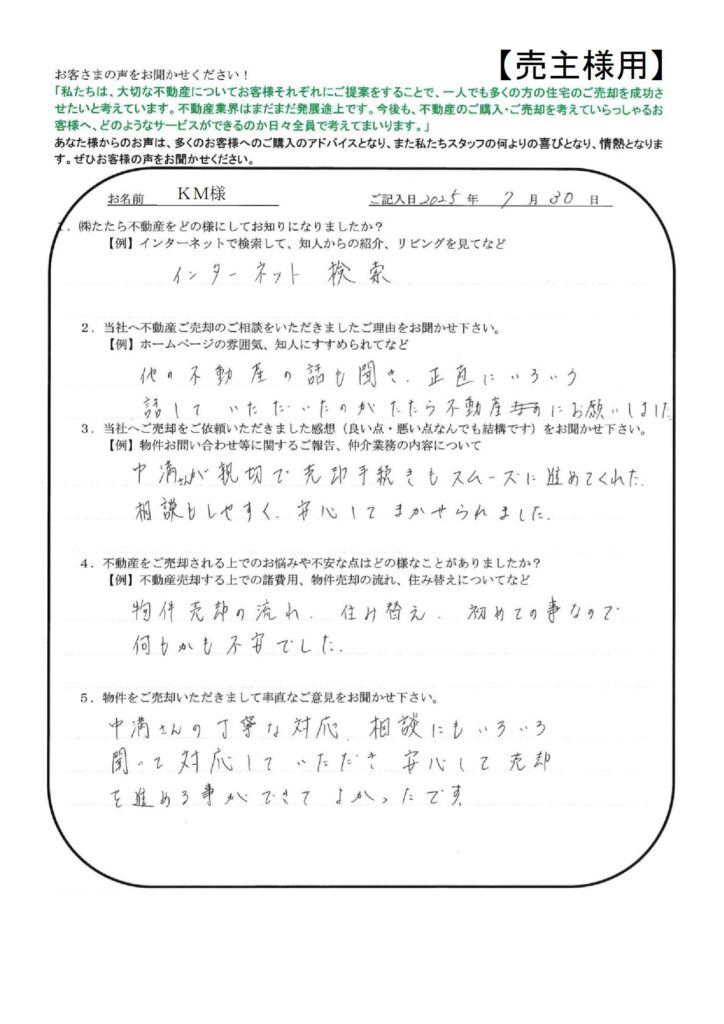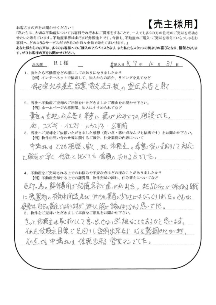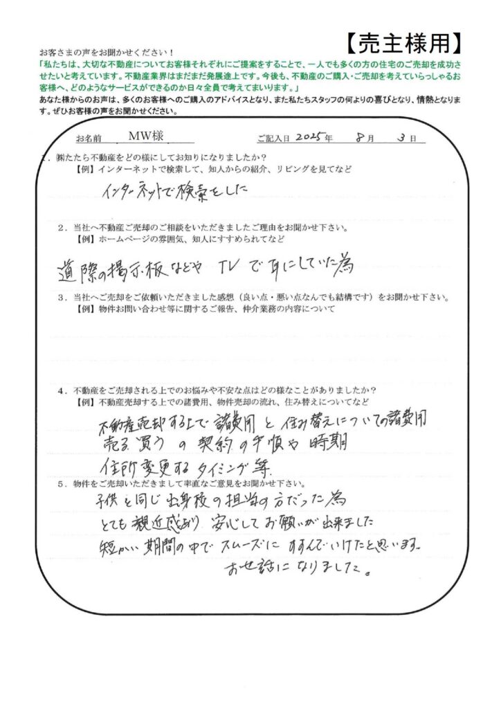 お世話になりました。【ST様】」